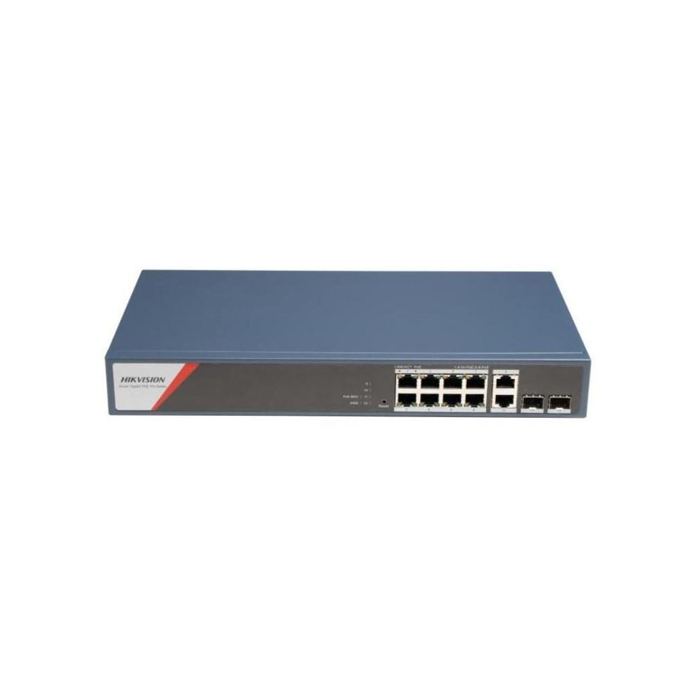 Hikvision DS-3E1512HP-SI-8P2T2F - Smart managed switch 8x Gb PoE + 2x Gb SFP Uplink + 2xGB RJ 45, 130W, Super PoE - dosah až 300mSmart funkce Vizualizace topologie sítě Alarmy typu PUSH Monitoring stavu zařízení v reálném čase Správa šířky pásma Náhled trasování Rozpoznávání zařízení Náhled živého snímkuHardwarové funkce PoE porty: 8 x gigabit port + 2x Gb SFP Uplink + 2x Gb RJ45 typ portů : RJ45, full duplex, MDI/MDI-X adaptive Network standard: IEEE 802.3, IEEE 802.3u, IEEE 802.3x, IEEE 802.3ab, and IEEE 802.3z Switching capacity: 24 Gbps Forwarding mode: Store-and-forward SuperPoE podpora přenosu až 300m MAC address Table: 8K PoE standard: IEEE802.3af, IEEE802.3at PoE Power: max. 130W Port power: 1-4 - 90W, 5-8 - 30WOstatní parametry Napájení: 100-240 V,
