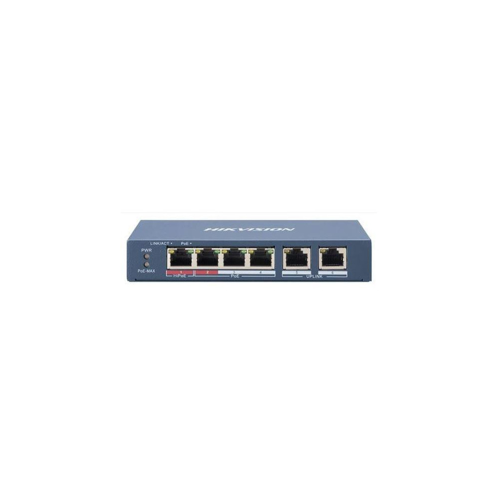 DS-3E0106HP-E - switch 1x 100TX HI-PoE + 3x 100TX PoE, 2x 100TX uplink, 60W, Super PoE