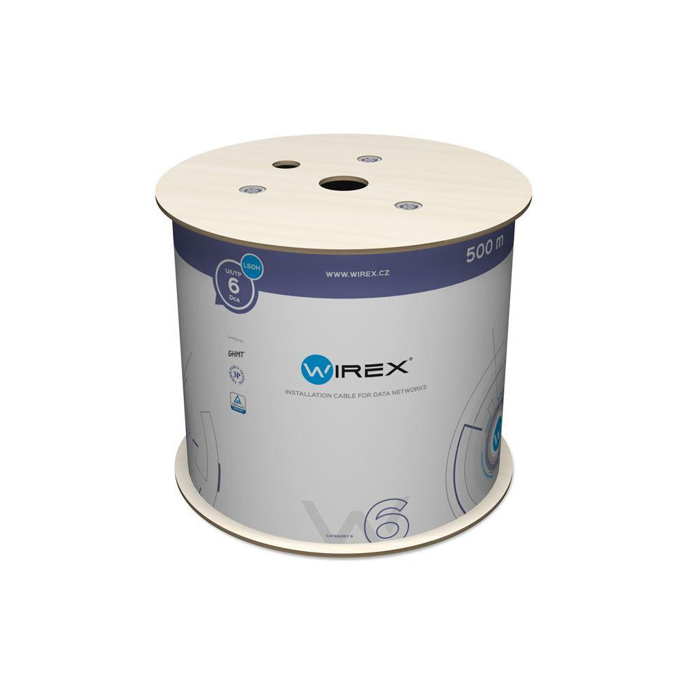 Instalační kabely WIREX se vyznačují vysokou spolehlivostí a stabilitou parametrů po celou dobu životnosti instalované metalické datové sítě. Zvládají nejnáročnější přenosové protokoly, které je možno dle standardů provozovat na kabelážích kategorie CAT6. Tento typ kabelu je možno instalovat v různých prostředích, jako jsou administrativní prostory nebo datová centra. Kabel je dodáván na dřevěné cívce, díky které je usnadněna manipulace při odmotávání kabelu. Pro přehlednost je metráž kabelu značena od 0 m do 500 m.