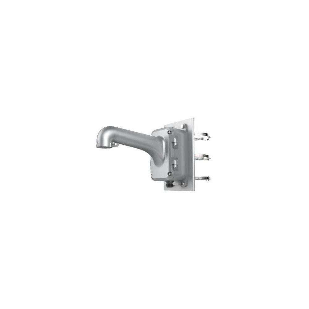 Konzole s montážním boxem na sloup, platinově-šedý vzhled Pro PTZ kamery Hikvision Velký box na napájecí zdroj se spodním a zadním vývodem Jistící háček pro snadnou instalaci Pro průměr sloupu 100 - 200mm Materiál: hliníková slitina s povrchovou úpravou Rozměry 456,5mm x 314mm x 195mm Vnitřní rozměry boxu - délka x šířka x hloubka 215x125x95mm Hmotnost: 5,7kg Nosnost 10kg