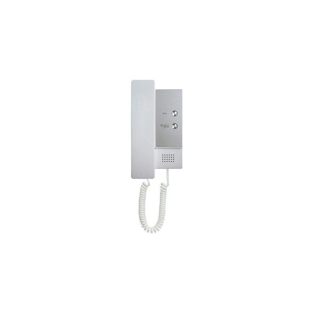 Audiotelefon pro 2-drátový domovní systém D2. Může pracovat i jako rozšiřující telefon (slave režim) pro bytový monitor. Podpora ovládání druhého zámku.Vstup pro zvonek před bytem. NEpodporuje interkom. NEpodporuje odemknutí, pokud se nezvoní. Pokud uživatelé nechtějí investovat v systémech 2-drátového do bytových TFT monitorů, mohou použít pouhé sluchátkové telefony. Telefon se k systému připojuje zcela shodně jako domovní monitor, tzn. je mu přidělena adresa na sběrnici a je mu poskytováno napájení z domovního rozvodu. Upozornění: neumožňuje změnit dobu otevřen&