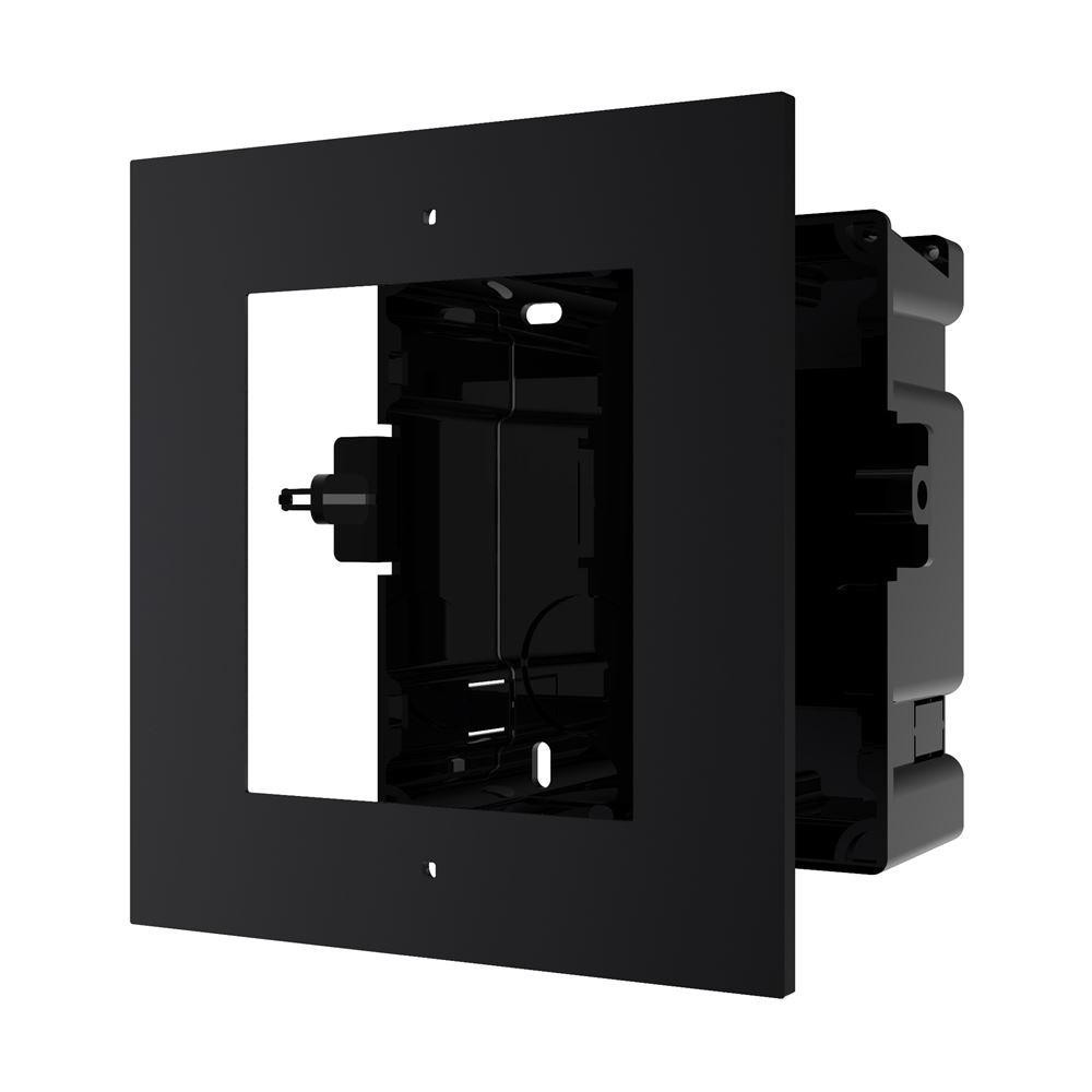 Černý rámeček modulárního interkomu Hikvision DS-KD-ACF1(O-STD)/BLACK/EU BV Určeno pro zápustnou montáž Lze osadit 1 modul interkomu (IP i 2-žilový) Obsahuje příslušenství k montáži Materiál: slitina hliníku Rozměry krycího rámečku: 134 x 124 × 4 mm Rozměry montážního boxu / otvoru pro box: 107 x 117 × 45 mm