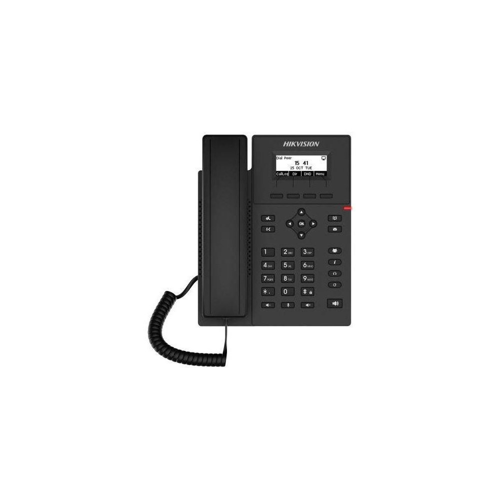 HIKVISION DS-KP6000-HE1 - Vnitřní SIP telefon s 2,3 palcovým displejem a PoE napájením Telefon má 33 fyzických tlačítek Displej : 2,3" s rozlišením 128 × 48px Počet komunikačních SIP linek: 4 Místní telefonní seznam: 1000 záznamů Kapacita protokolu záznamů: 600 Rozhraní: 2x RJ-45 10/100 Mbps self-adaptive: Network x1, PC x1 (Bridged to Network), 2x RJ-9: sluchátko + headset Pracovní teplota: 0 °C až 45 °C Možnost montáže na stěnu i umístění na stůl Rozměry dle typu montáže a polohy stojánku: maximálně 169 x 204 x 208mm Napájení: POE/5 VDC