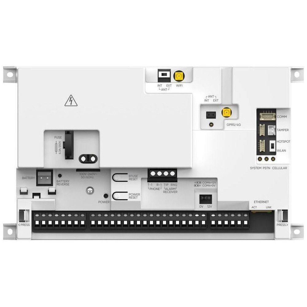 Hikvision DS-PA502-64 -AX HYBRID PRO panel ústředny, 64 zón 64 zón a 64 výstupů 32 oblastí 1 technik, 1 administrátor, 200 operátorů Duální sběrnice, až 32 zařízení se sběrnicí Dvoucestné hlášení do ARC, podpora redundance ARC Podpora LAN, Wi-Fi, podpora volitelného komunikátoru PSTN/GPRS/4G Podpora 4kanálového zabudovaného úložiště pro ověřování videa IPC Podpora protokolů ISAPI, OTAP Třída 2 dle normy EN50131Parametry Ochrana proti neoprávněné manipulaci 1 vstup pro neoprávněnou manipulaci Sběrnice 2 porty 2cestné šifrované komunikace, poloduplexní, asynchronní sběrnice Oblasti: 32 Instalátor cloudových zařízení: 120 Uživatelé: 62 Operátorů Bezdrátové tagy: 64 Bezdrátové klíčenky: 64 Automatizační scénáře: 256 Záznamy 4950 včetně 1000 povinných v paměti flash PIR CAM