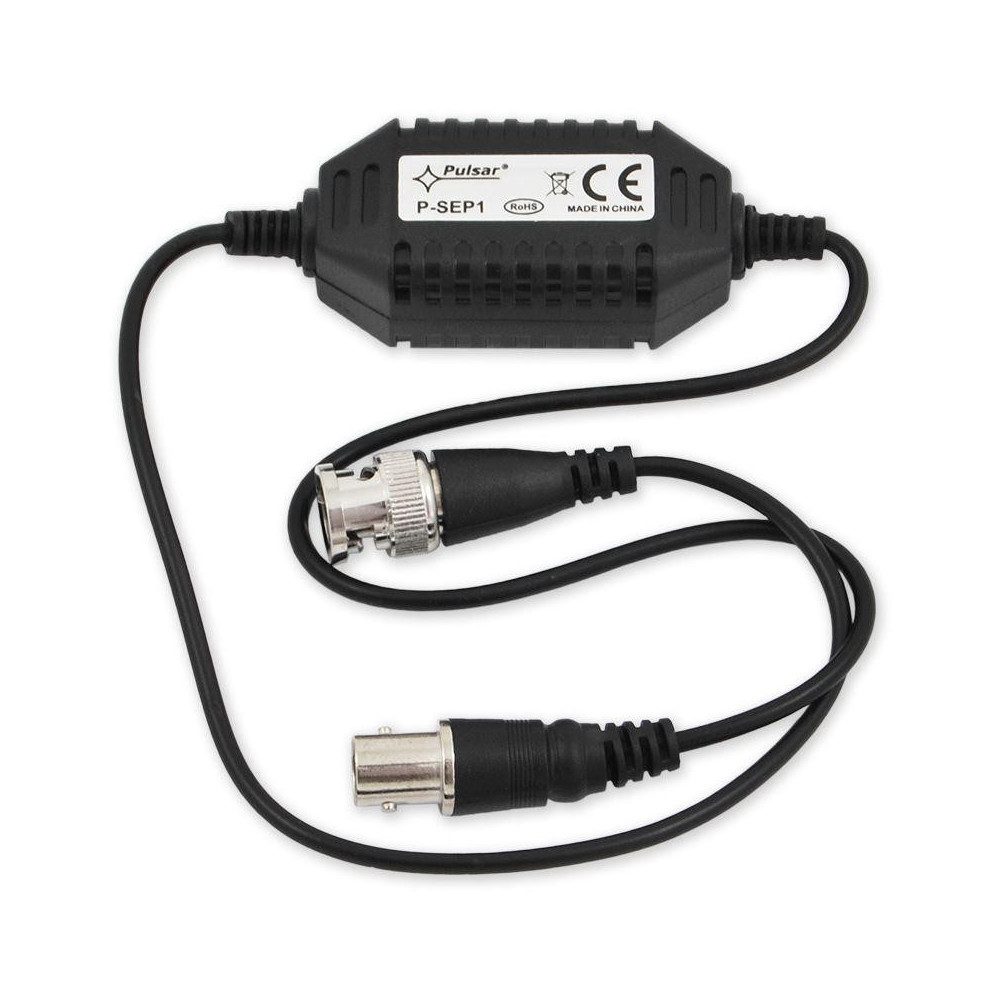 Obousměrný galvanický oddělovač videosignálu pro koaxiální vodič. Odstraňuje rušení videosignálu způsobené vnějšími vlivy v místě instalace.